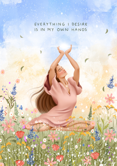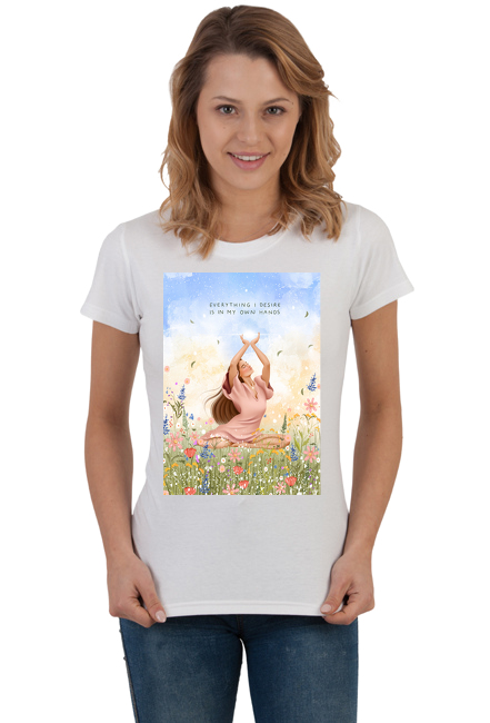 Everything I desire is in my own hands co oznacza wszystko czego pragnę jest w moich rękąch. Ta piękna koszulka przypomni nam, że mamy wpływ na swoje życie i codziennie podejmowane wybory. To one prowadzą nas do celu.